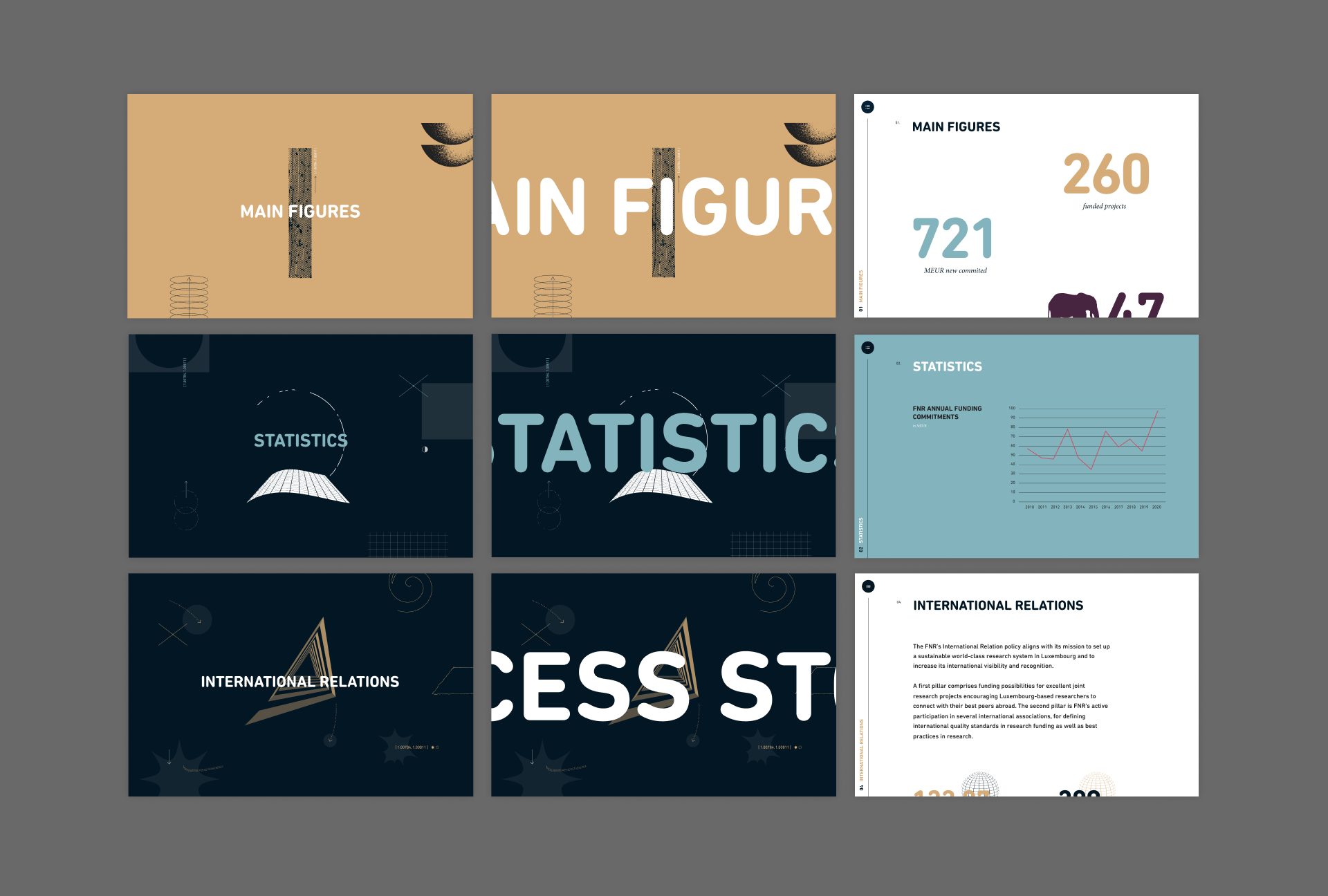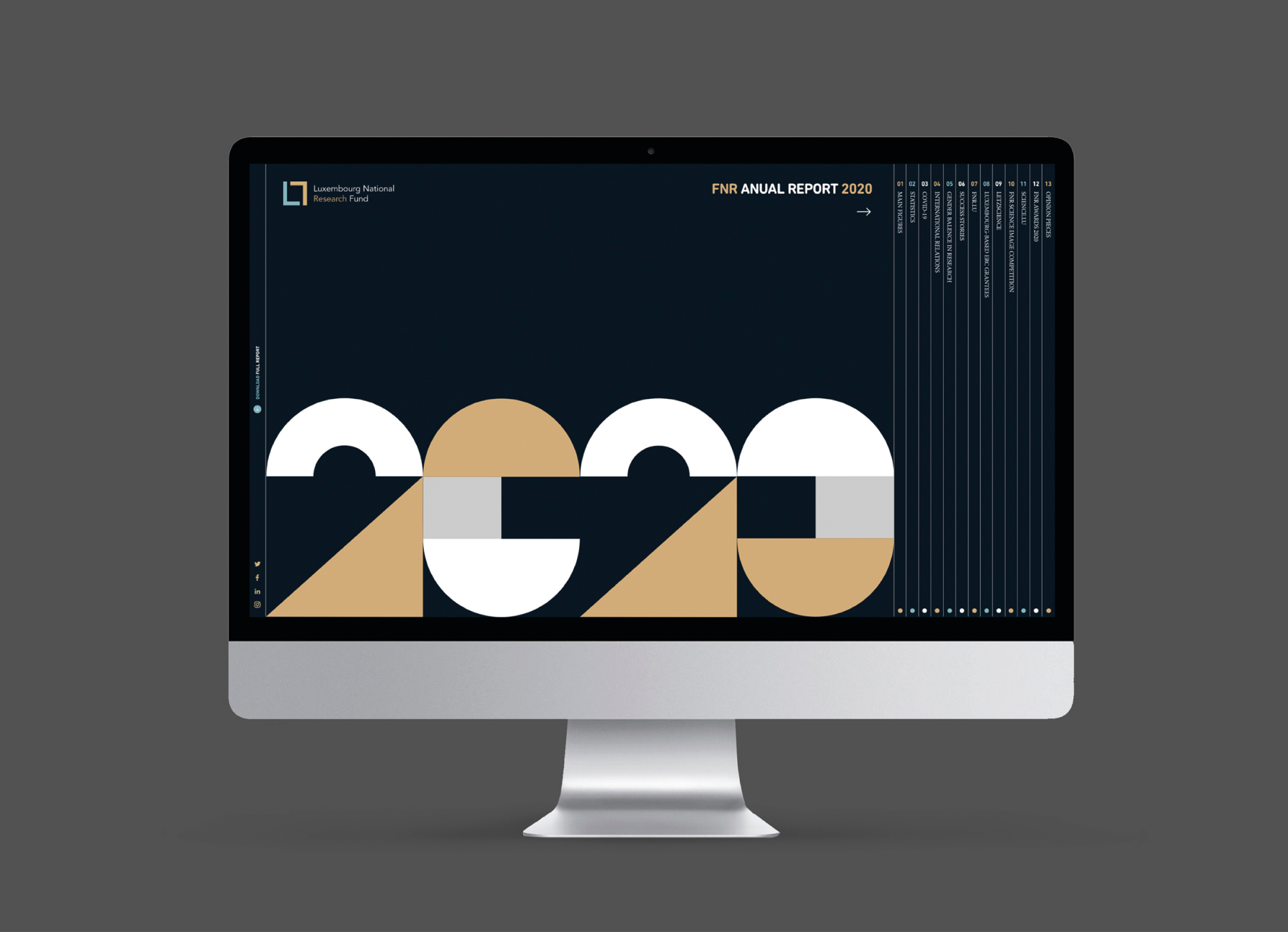 We created a digital annual report incorporating a variety of multimedia content. This interface allows readers to explore the FNR’s activities in a more interactive manner than a traditional printed annual report. The design is inspired by the FNR Science Image Competition, which offered a panel of pictures used to create graphic elements.